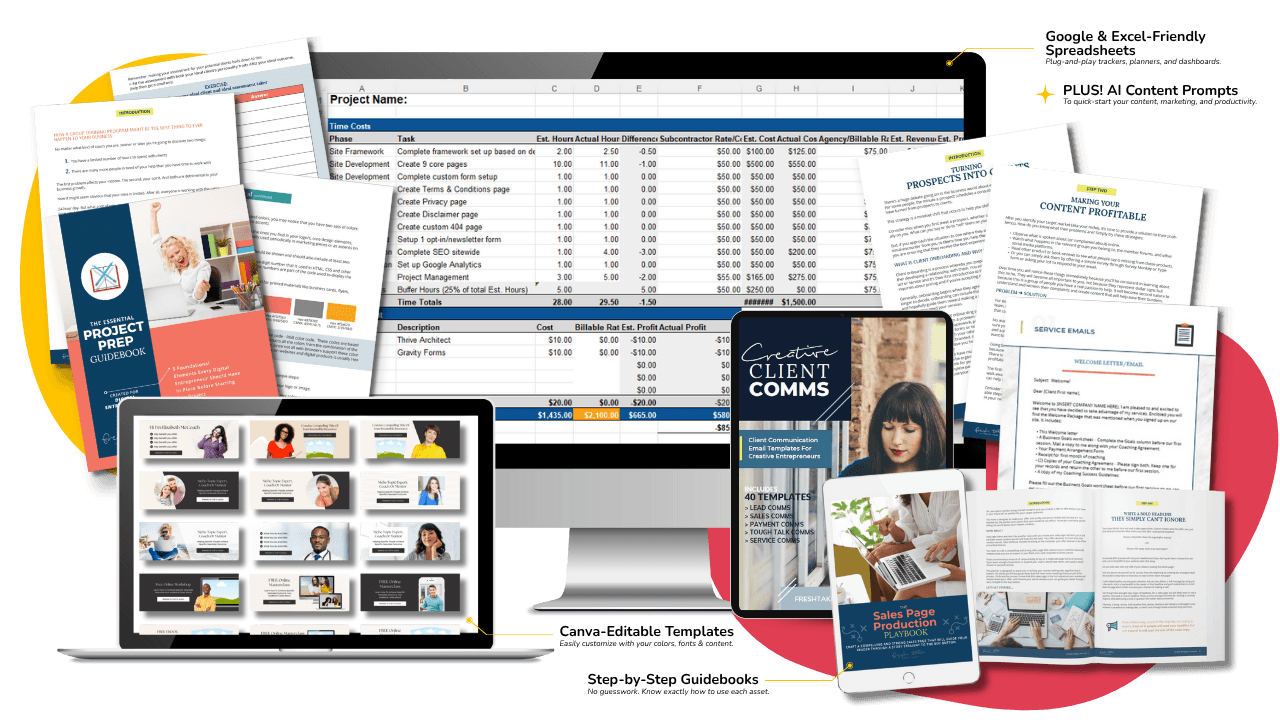 Editable Google Docs, Sheets, and spreadsheets for planners, checklists, client guides, and more. This is where strategy meets functionality.